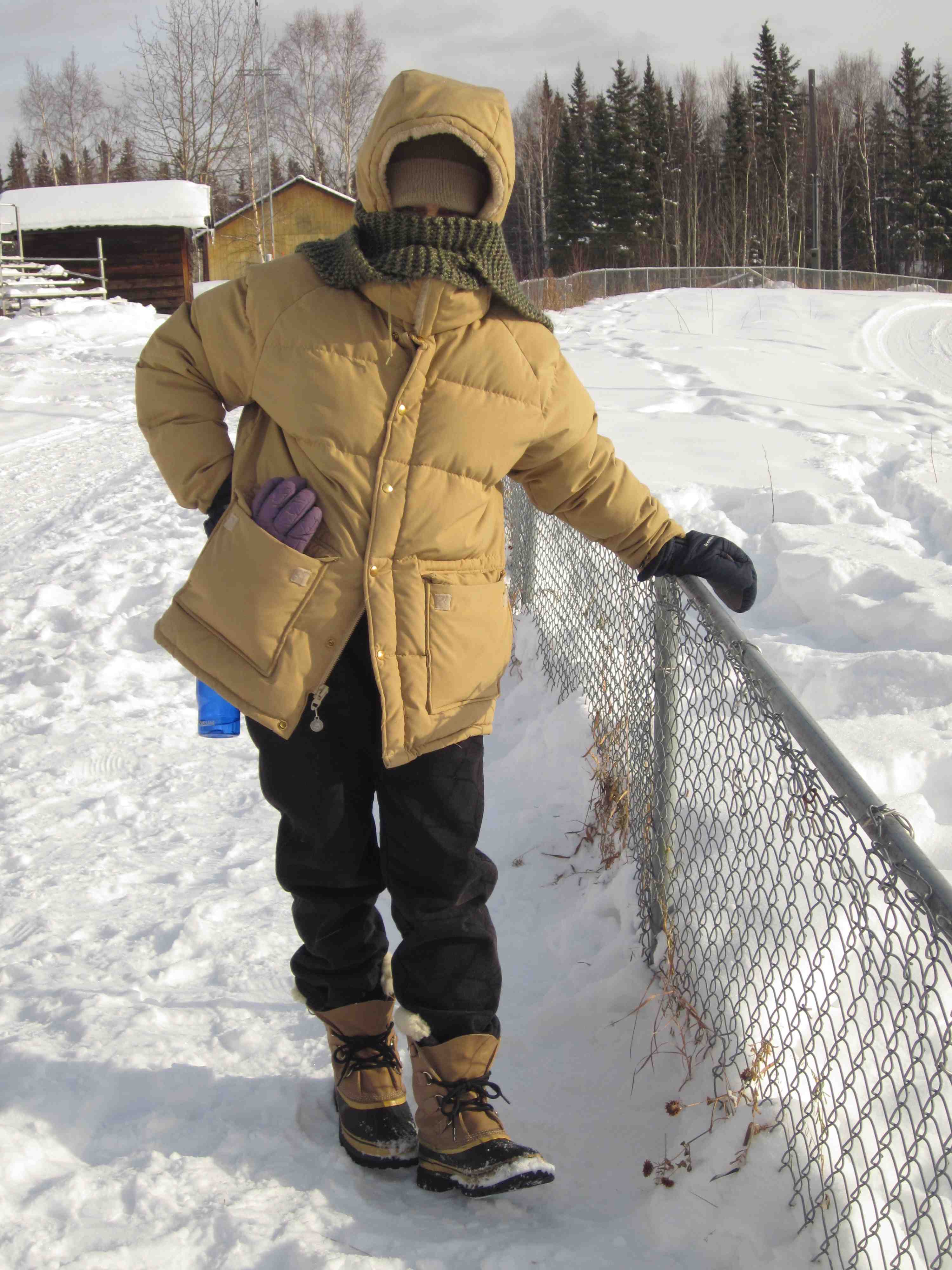 Beyond having good clothing, two Fairbanks facts make a huge difference: there is very little wind and it is very dry. The truth is that I often feel way colder walking on West Cliff Drive in Santa Cruz, when the chill wind is coming off the ocean, than I have ever felt here. (My take-away: improve my clothing in Santa Cruz!)